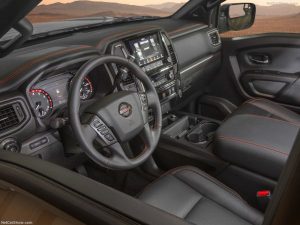 So với các phiên bản cũ phần đầu xe của Titan được làm làm bằng các ốp nhựa màu đen (Pro-4X) hay mạ crom (Platinum Reserve và SL). Vô lăng được thiết kế đa chấu và trang trí bắt mắt hơn hẳn.